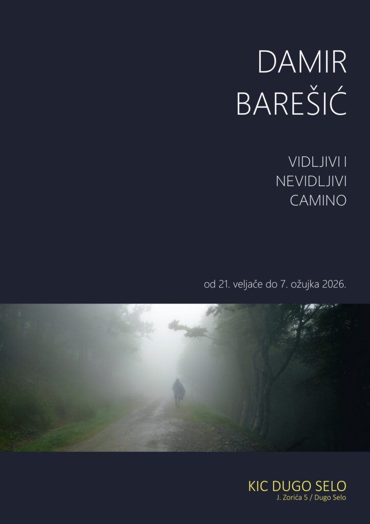 Izložba “Vidljivi i nevidljivi Camino” kroz 67 svjetlopisa (fotografija) prikazuje trenutke nastale u različitim situacijama i dionicama tijekom sedam hodočasničkih Camina u Španjolskoj koje je autor Damir Barešić prohodao od 2011. do 2024. godine.